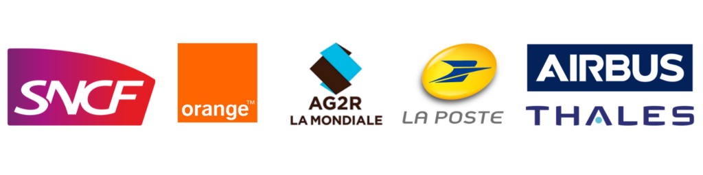 Nous intervenons notamment auprès d’acteurs tels que : SNCF, Orange, AG2R, La Poste, Airbus ou encore Thales.